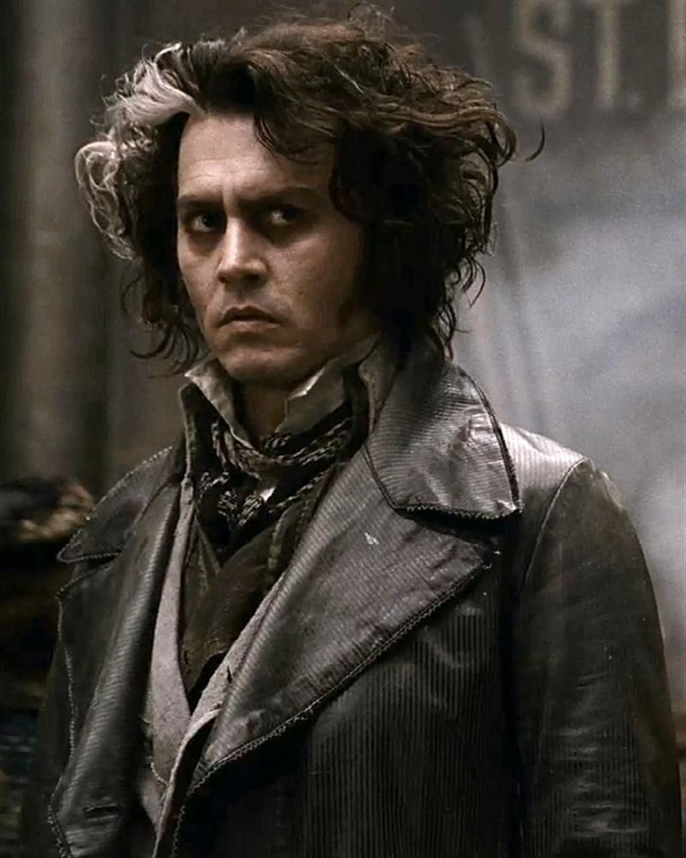 For this dark character, heavy purple and brown makeup were applied around the eyes of Johnny Depp and this suggests his fatigue and rage. For the white streak in his hair, the actor explained, “The idea was that he’d had this hideous trauma, from being sent away, locked away. That streak of white hair became the shock of that rage.”
