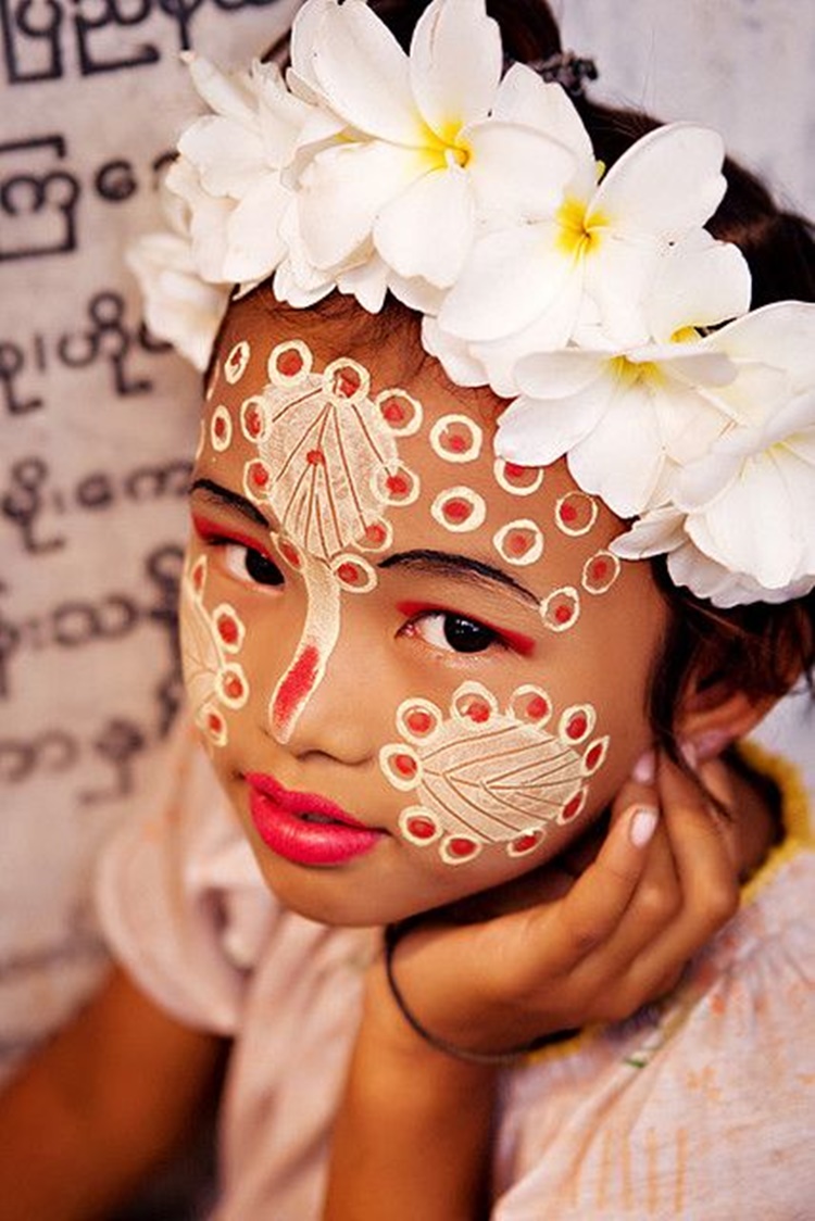 Artistry are also being brought out when applying thanaka on the face. Just like this young girl’s face as thanaka was applied with patterns and red-colored cosmetic.